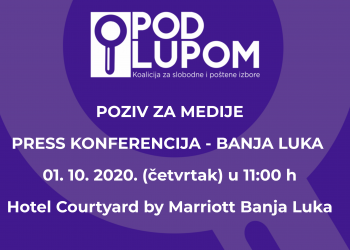 Pozivamo Vas na press konferenciju Koalicije za slobodne i poštene izbore ,,Pod lupom“ koja će biti održana 15. 10. 2020....