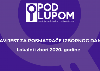 Koalicija „Pod lupom“ obavještava građane i građanke Bosne i Hercegovine da su prijave za posmatrače/ice izbornog dana Lokalnih izbora 2020....