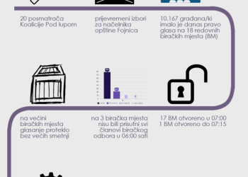 Dvadeset građanskih posmatrača Koalicije ''Pod lupom'' nesmetano posmatra prijevremene izbore za načelnika koji se danas održavaju u opštini Fojnica. Posmatrači...